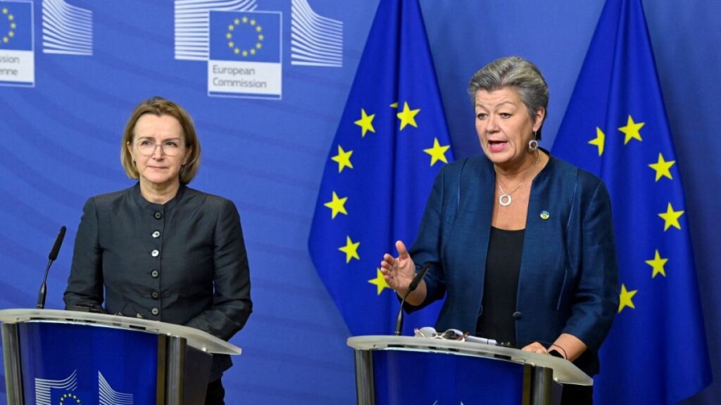 Avrupa Komisyonu’nun içişlerinden sorumlu üyesi Ylva Johansson, Avrupa dönüş koordinatörü Mari Juritsch ile ortak basın toplantısı düzenledi.